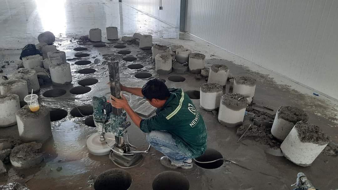 - Khoan lổ neo,cấy sắt chờ,cấy bu lông.